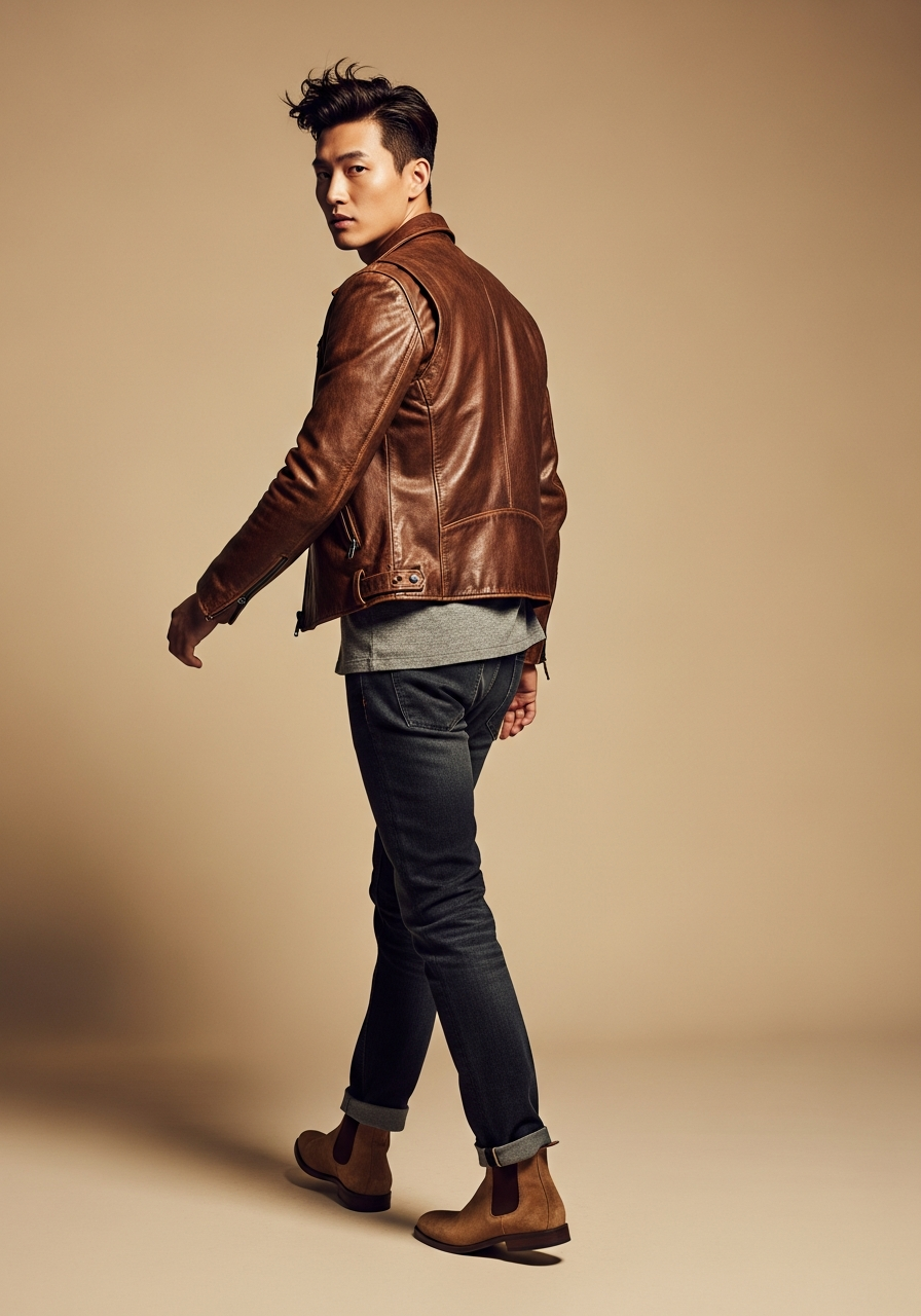 레더재킷 뒤돌아보기